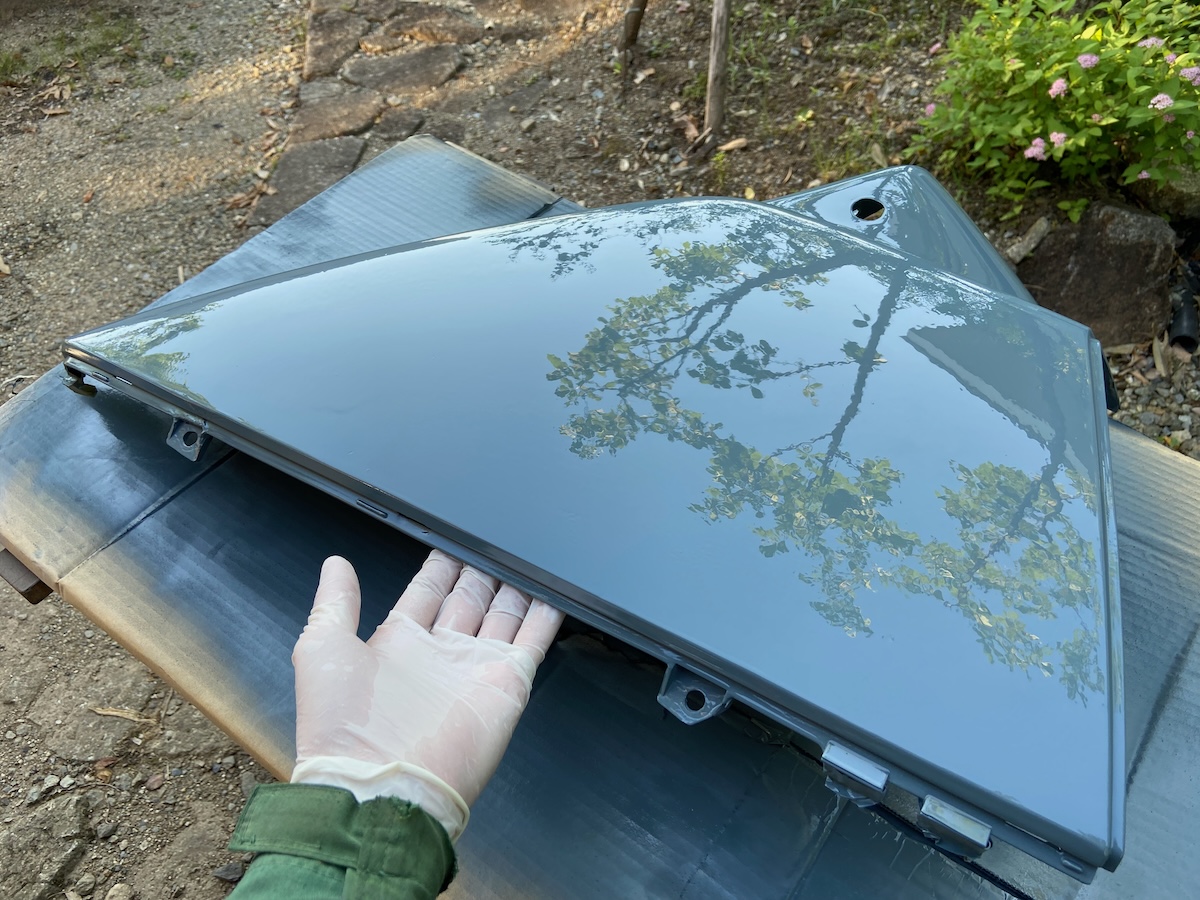 ウレタン塗装は何度かやって少し慣れてきてはいますが何度やっても難しい。シンナーの割合や空気圧、塗料の吐出量、スプレーガンの距離や動かすスピードなど、何かしらが良くないらしく微妙な波打ちやザラつき、タレが出てしまいます。