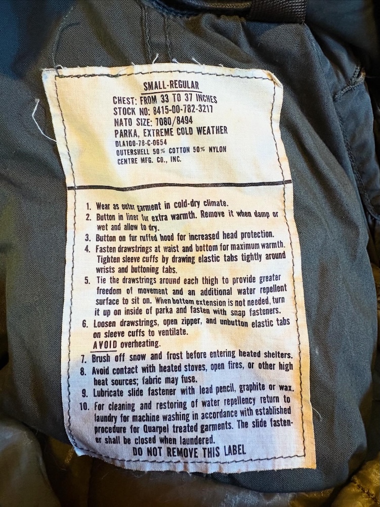 相棒と言いつつ、ほぼエスキモーなEXTREME COLD WEATHER仕様のコートを着る機会は近年もなく、タンスのキャパも圧迫するので「いよいよメルカリか」と相場を調べたところ、なんと驚きのプレミア相場であることが判明。ビンテージゆえ希少、また最近のダボダボファッショントレンドにより人気が出て年々相場が上がっているらしく、実物新品なら10万円前後、中古でも5万円前後という感触です。買った当時は1万円前後だったと思いますが。